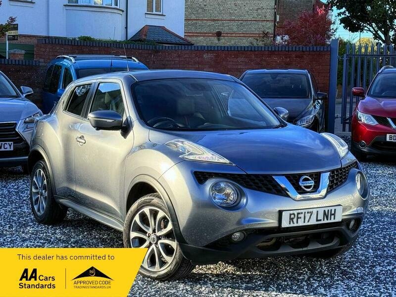 ULEZ compliant, 2017 Nissan Juke Tekna, boasting an incredibly low mileage of just 34,000 miles, Backed with a full service history (6 service invoices, recent service carried out), Only 1 former keeper, Mot August 2026, Road tax £195 per year, making it a standout choice for its age. This Euro 6 compliant 1.6L petrol model offers a clear vehicle history, providing peace of mind for its next owner. Inside, you'll find a host of desirable features designed for comfort and convenience, including Intelligent Key with a Start Push Button for keyless entry and ignition, and heated front seats to keep you warm on colder days, Full black leather with red leather inserts, Red dash fascia trim, Leather stitched steering, 360 Camera view with reverse camera, Satellite navigation 12 MONTHS AA WARRANTY AVAILABLE. P/X WELCOME. NATIONWIDE DELIVERY. RESERVE NOW £99. CARDS WELCOME.